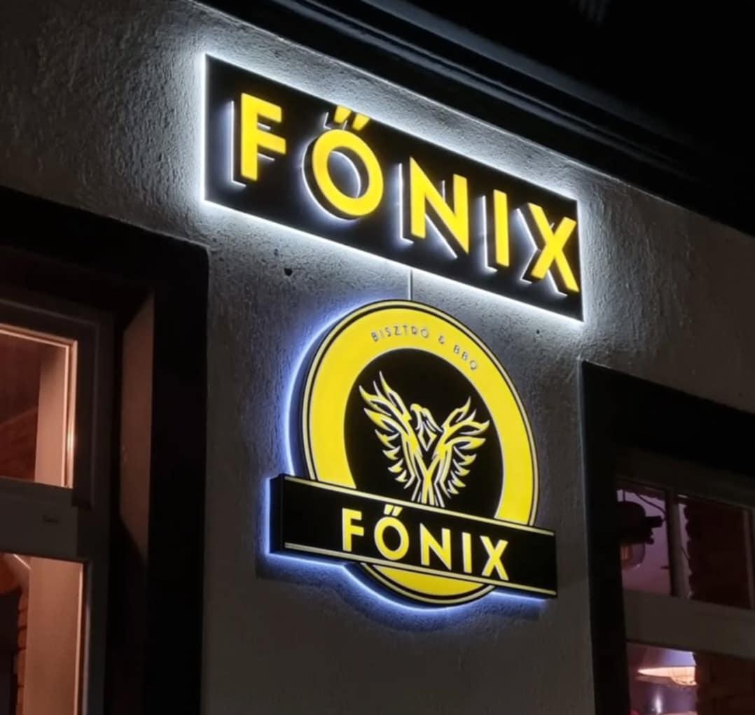 Elegáns LED világító tábla, amely éjszakai hangulatban kiemeli üzletek és szolgáltatóhelyek homlokzatát, figyelemfelkeltő és modern megoldást kínálva.